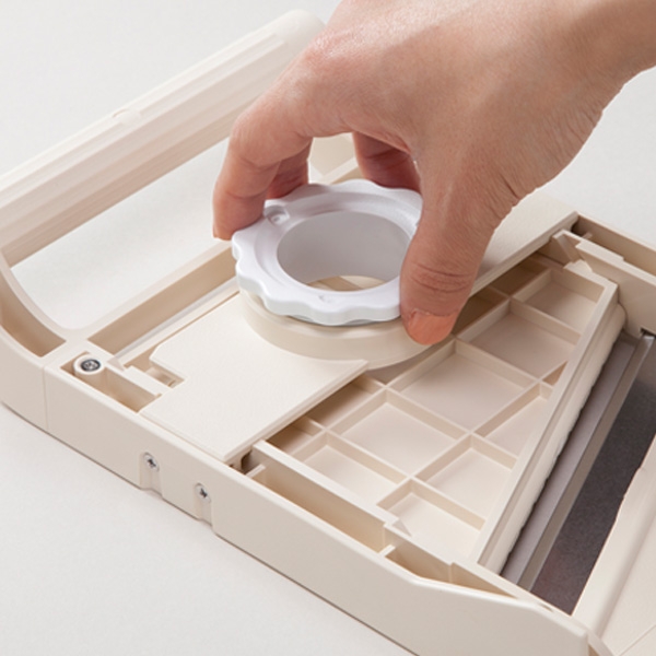 Phần rãnh thông minh giúp cố định bào Benriner ở thành tô, giúp thực phẩm không bị rơi ra ngoài.