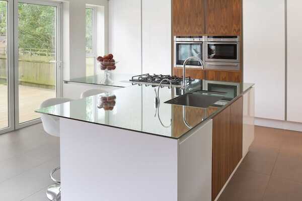 Có thể kết hợp được với cả phong cách hiện đại và cổ điển, mặt bàn bếp bằng kính cường lực đang là một trong những vật liệu được quan tâm.