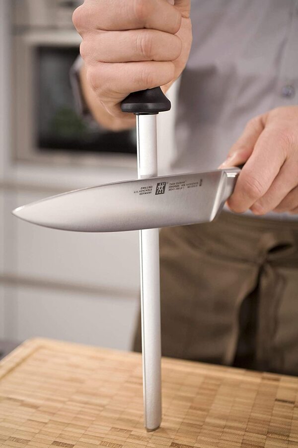 - Cây mài dao ZWILLING Crom: từ thép không gỉ phủ crom có độ cứng cao, giúp loại bỏ đi các tạp chất trên lưỡi dao và cho ra kết quả mài đạt độ sắc bén tốt. Với loại cây mài này bạn cần liếc đều 2 bên mặt dao từ 8-10 lần.