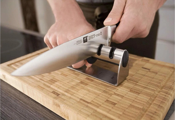 (Ảnh: Tư thế chuẩn khi dùng mài dao 2 lưỡi ZWILLING Twinsharp)