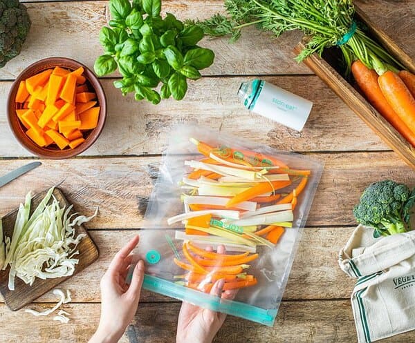 Túi hút chân không sử dụng tương thích với ứng dụng Stor'eat kiểm tra mã QR in sẵn trên mặt túi. Stor'eat cho phép bạn quét tất cả mã QR trên túi để tối ưu hóa khả năng bảo quản, ghi nhớ ngày hết hạn, dễ dàng tìm thấy sản phẩm trong ngăn tủ lạnh. Túi có thể tái sử dụng mang đến sự tiện lợi, tiết kiệm cho người dùng.