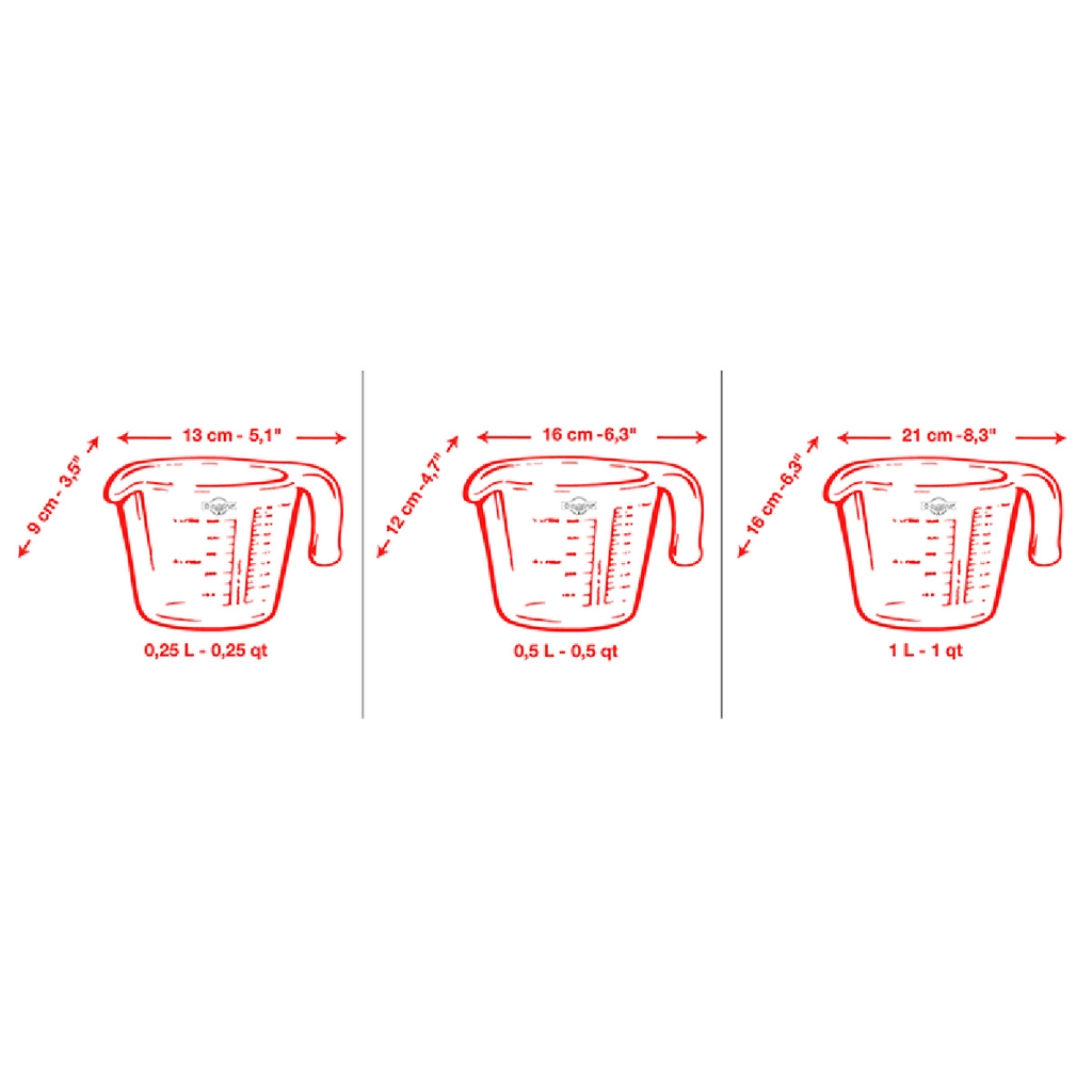 Ca đong dung tích Ocuisine được thiết kế với 3 kích thước khác nhau 0,25 lít, 0,5 lít và 1 lít để đáp ứng nhu cầu đa dạng của người tiêu dùng. Ca có tay cầm chắc chắn và có trọng lượng nhẹ giúp người dùng cầm nắm thoải mái. Ca được thiết kế thông minh với các vạch chia rõ ràng và dễ dàng quan sát, giúp người dùng đo lường chính xác các nguyên liệu.