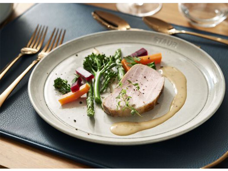 Chất liệu gốm Staub chịu lạnh ở nhiệt độ - 20 độ C, chịu nhiệt đến 300 độ C. Có thể đặt đĩa vào tủ lạnh hoặc lò vi sóng đều được.