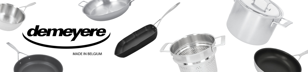 DEMEYERE là thương hiệu sản xuất các dụng cụ nhà bếp đến từ Bỉ. Sản phẩm nồi/chảo inox, chảo chống dính nổi bật với các dòng Apollo, Industry, Atlantis...