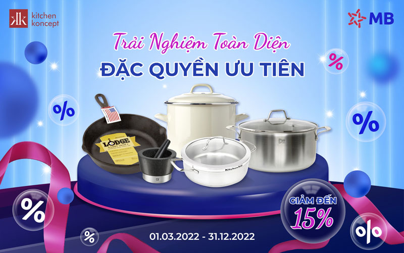 Với mục đích đem tới sự trải nghiệm toàn diện, đẳng cấp, Kitchen Koncept và MB Bank đã hợp tác triển khai chương trình “Trải nghiệm toàn diện, đặc quyền ưu tiên” với các mức ưu đãi siêu khủng chỉ dành riêng cho khách hàng Priority và Private.